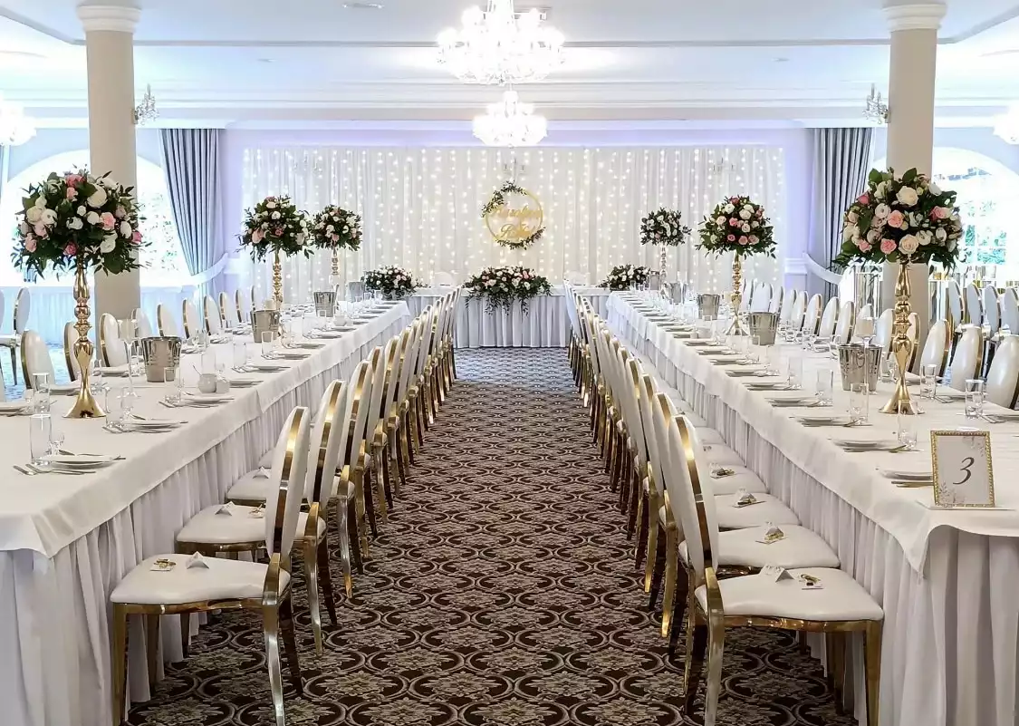 Dbamy o to, aby nasze wnętrza były nie tylko piękne, ale także funkcjonalne, zapewniając komfort gościom i pasując dla różnorodnych uroczystości.